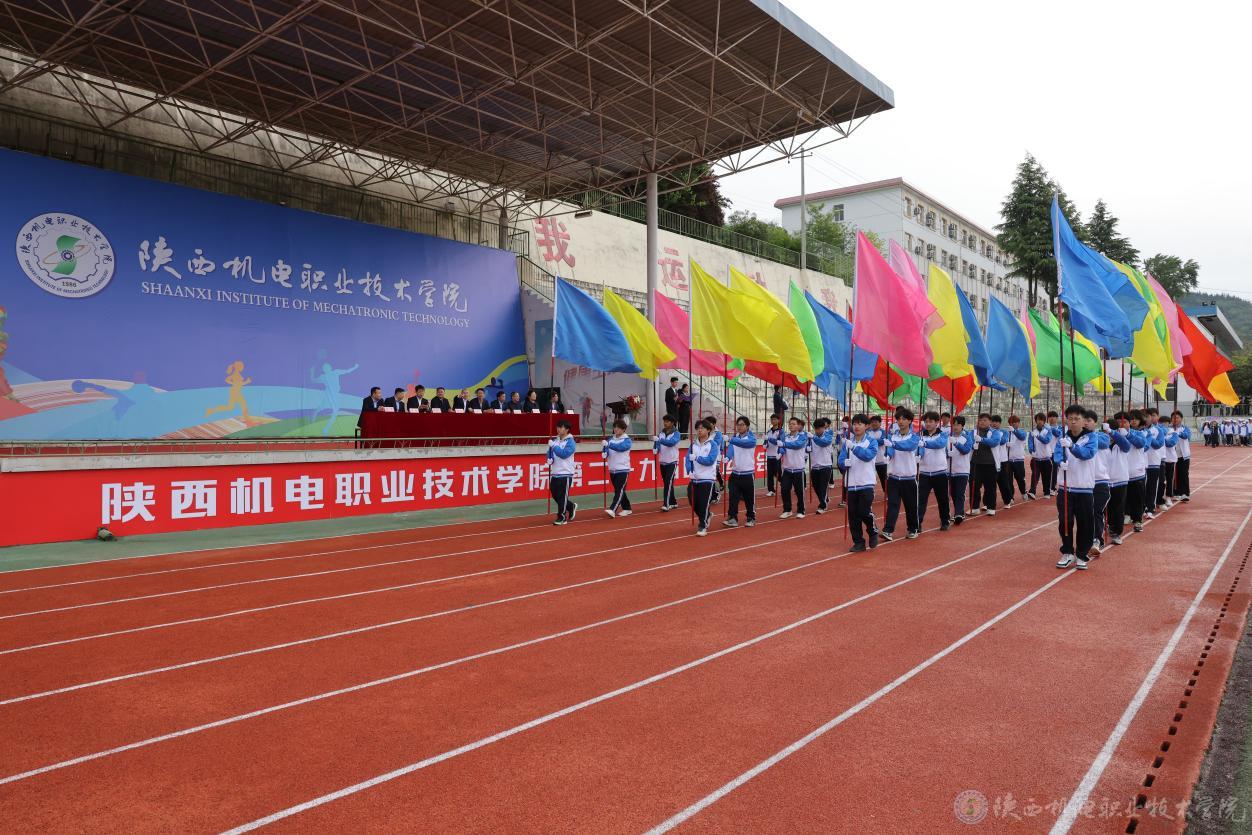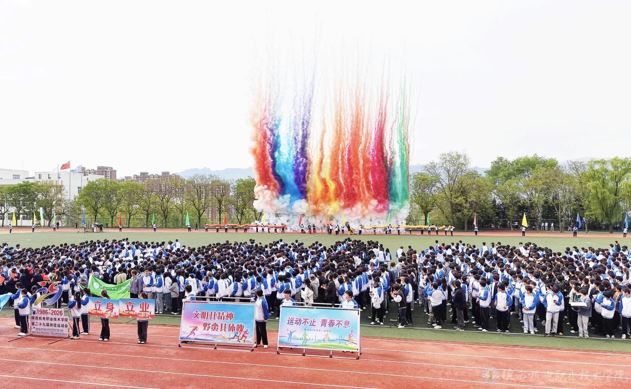 “陕西机电职业技术学院第29届田径运动会开幕!”一声令下,礼炮轰鸣,彩烟腾空,运动会正式拉开帷幕。